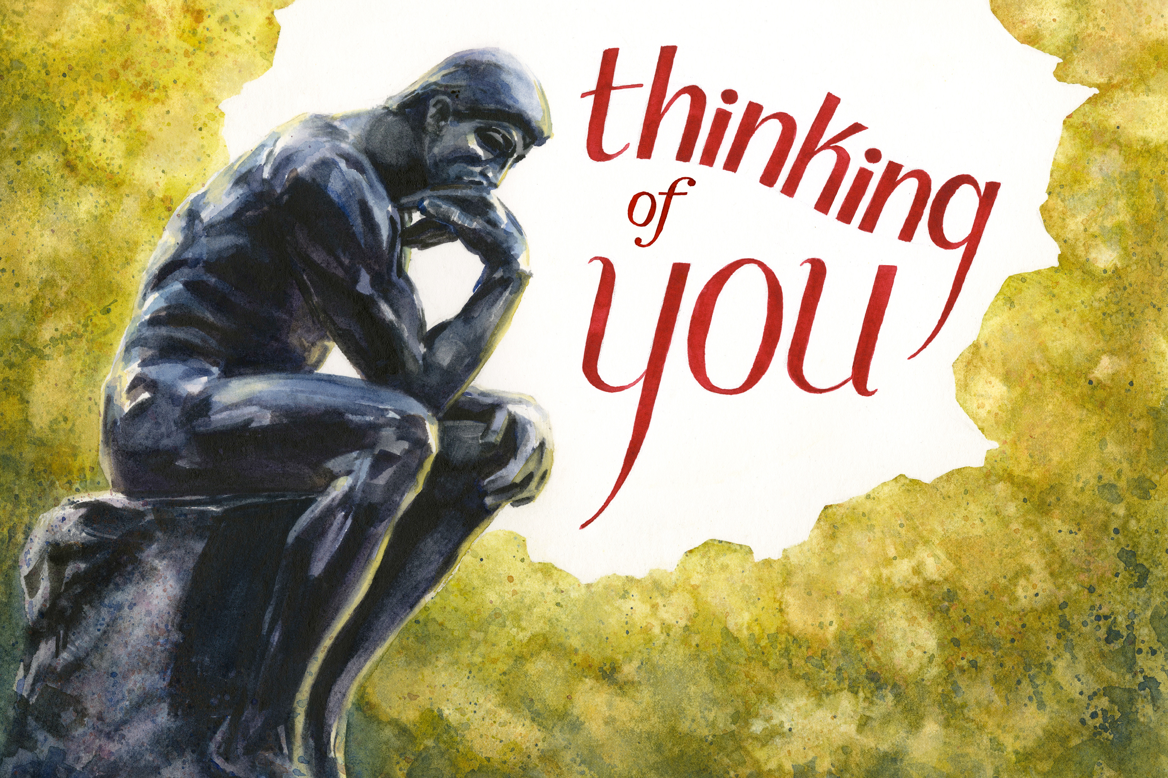 Watercolor greeting card design based on sketches outside the entrance to the Rodin Museum in Philadelphia, PA.